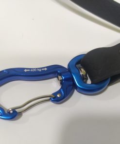 Estas correas cuentan con un mosquetón de gatillo, que facilita su apertura y en caso de tirón da mayor seguridad por el tipo de cierre.
